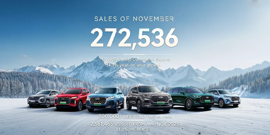 به طور کلی مجموع فروش خودروهای گروه چری از ژانویه تا نوامبر 2025 دقیقا به ۲,۵۶۱,۴۶۵ دستگاه رسیده است که در این زمینه هم رشد ۱۱.۱ درصدی را نسبت به سال گذشته نشان میدهد.