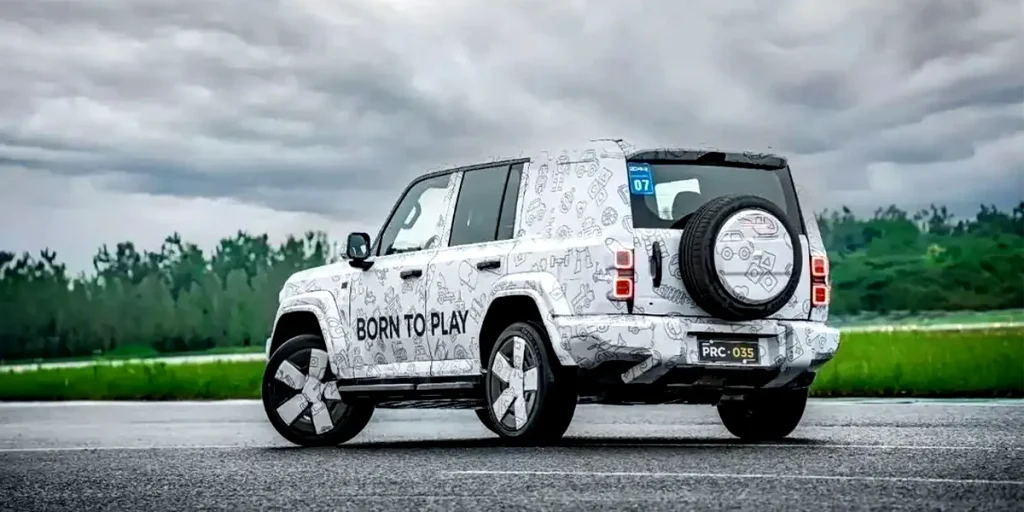 در قسمت عقب نیز این اسیووی متوسط، مجهز به چراغهای خطر عمودی به شکل مستطیل، درب عقب بازشو به طرفین، لاستیک زاپاس نصب شده در بیرون و یک سپر عقب محکم است که همچنان با عناصر طراحی آفرود مطابقت دارد. طراحی درب عقب و اسپویلر آن نیز به مشخصات و عملکرد متمایز این خودرو میافزاید.