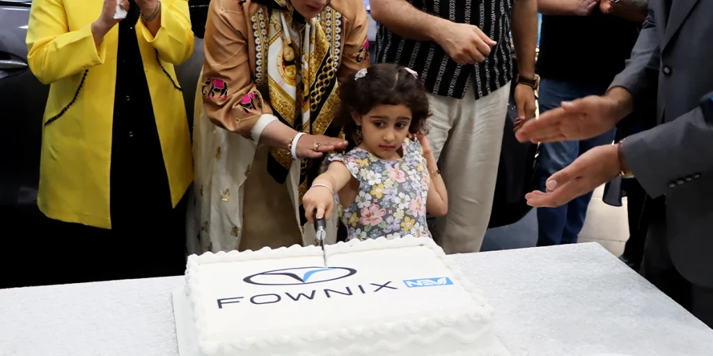 در ادامه خانواده‌های دعوت شده که از ریتم و اجرای مراسم به هیجان آمده بودند عکس یادگاری دسته‌جمعی گرفتند و کیک زیبایی را نیز بریدند تا در کنار هم جشن تحویل اولین سری از اف ایکس برقی را جشن گرفته باشند.