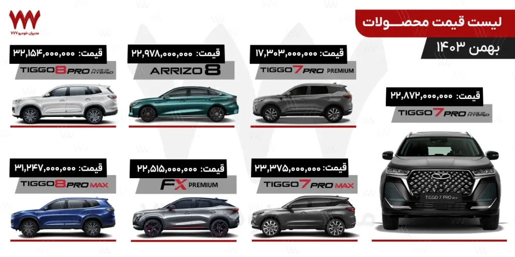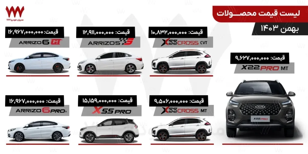 شرایط فروش و قیمت جدید محصولات مدیران خودرو بهمن 1403