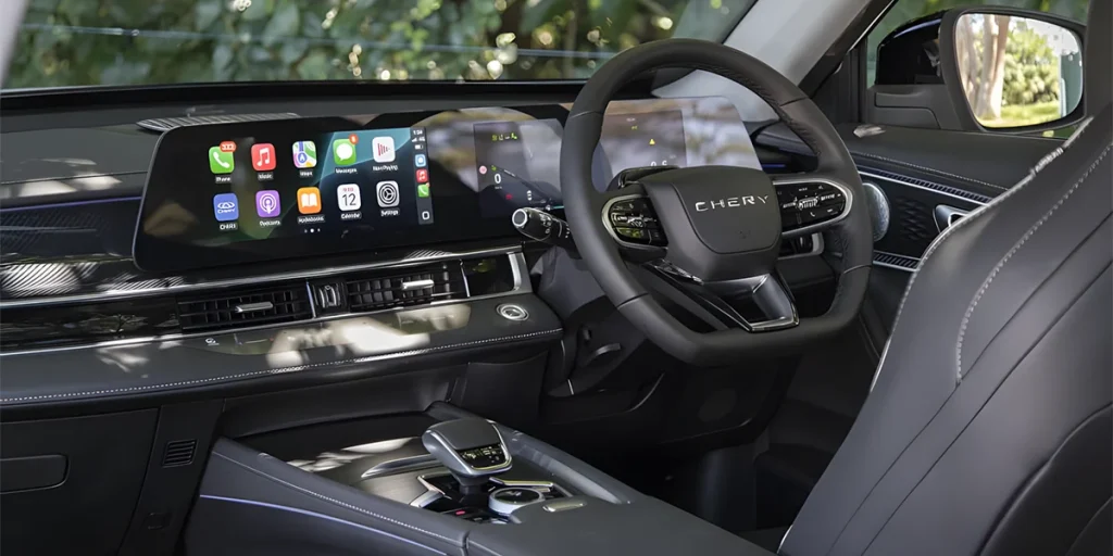 تمام مدلهای چری تیگو ۷ از یک سیستم با دو صفحه نمایش منحنی بهره میبرند و شامل دو نمایشگر ۱۲.۳ اینچی – یکی در مرکز و دیگری در پنل پشت آمپر، دوربینهای ۵۴۰ درجه با نمای شفاف شاسی و سه حالت رانندگی (اکو، نرمال و اسپرت) هستند. در نمای بیرونی، زبان طراحی چری تیگو با چراغهای چشم ببر در عقب، چراغهای جلو IQ LED با رنگ کریستالی، طراحی سقف شناور و جلوپنجره الماسی معروف، گسترش یافته است.