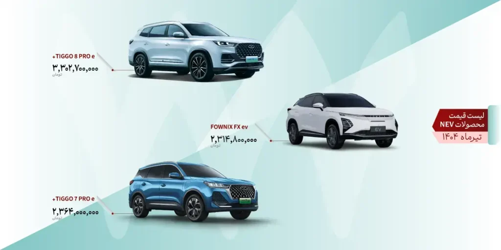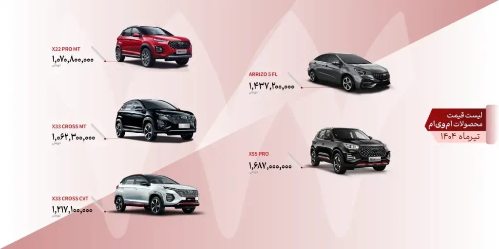 بر اساس این بخشنامه، خودروهای ایکس 22 پرو MT، ایکس 33 کراس (CVT) و ایکس 55 پرو IE از برند ام وی ام و محصولات اف ایکس برقی (EV)، تیگو 8 پرو e+ و تیگو 7 پرو e+ از روز شنبه در معرض فروش قرار میگیرند.