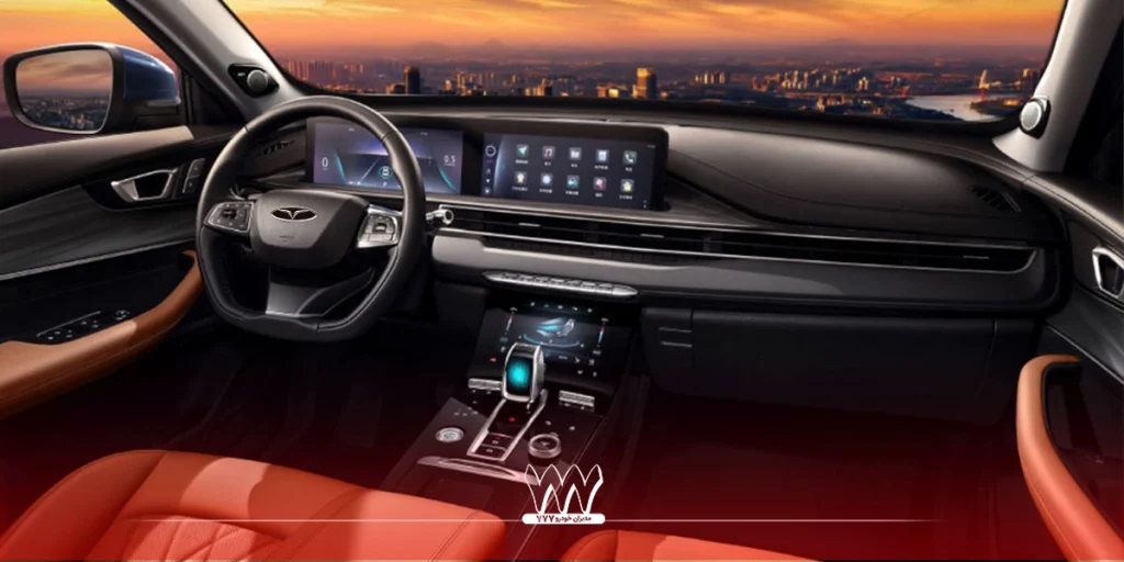 مانیتور دو صفحهای در بالای داشبورد هم اطلاعات لازم برای رانندگی و هم امکانات سیستم سطح 2.5 خودران (ADAS) را در اختیار راننده میگذارد و هم امکان استفاده از مالتیمدیا و سرگرمی در دسترس سرنشین است.