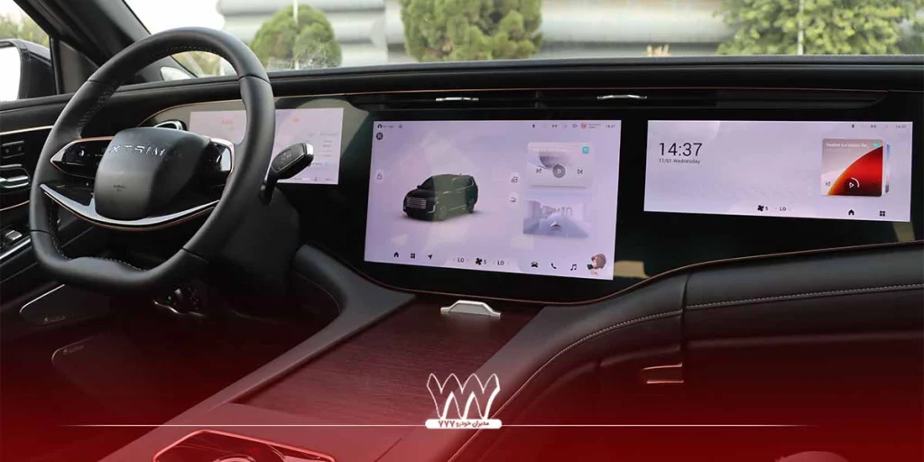 نمایشگر 40 اینچ روی کنسول، در واقع دریچهای برای ورود به دنیای بیپایان امکانات و آپشنهای این لوکسترین شاسی بلند مونتاژی ایران است.
